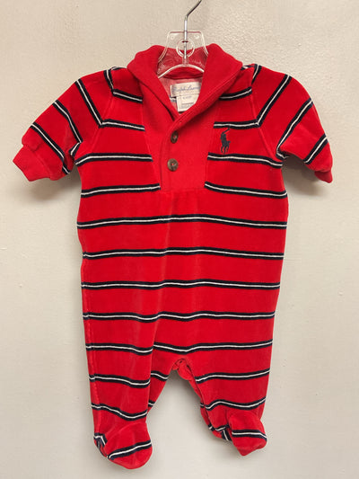Ralph Lauren Size NB Red & Blue Velour Infant Boys Stripe Jumpsuits & Coveralls