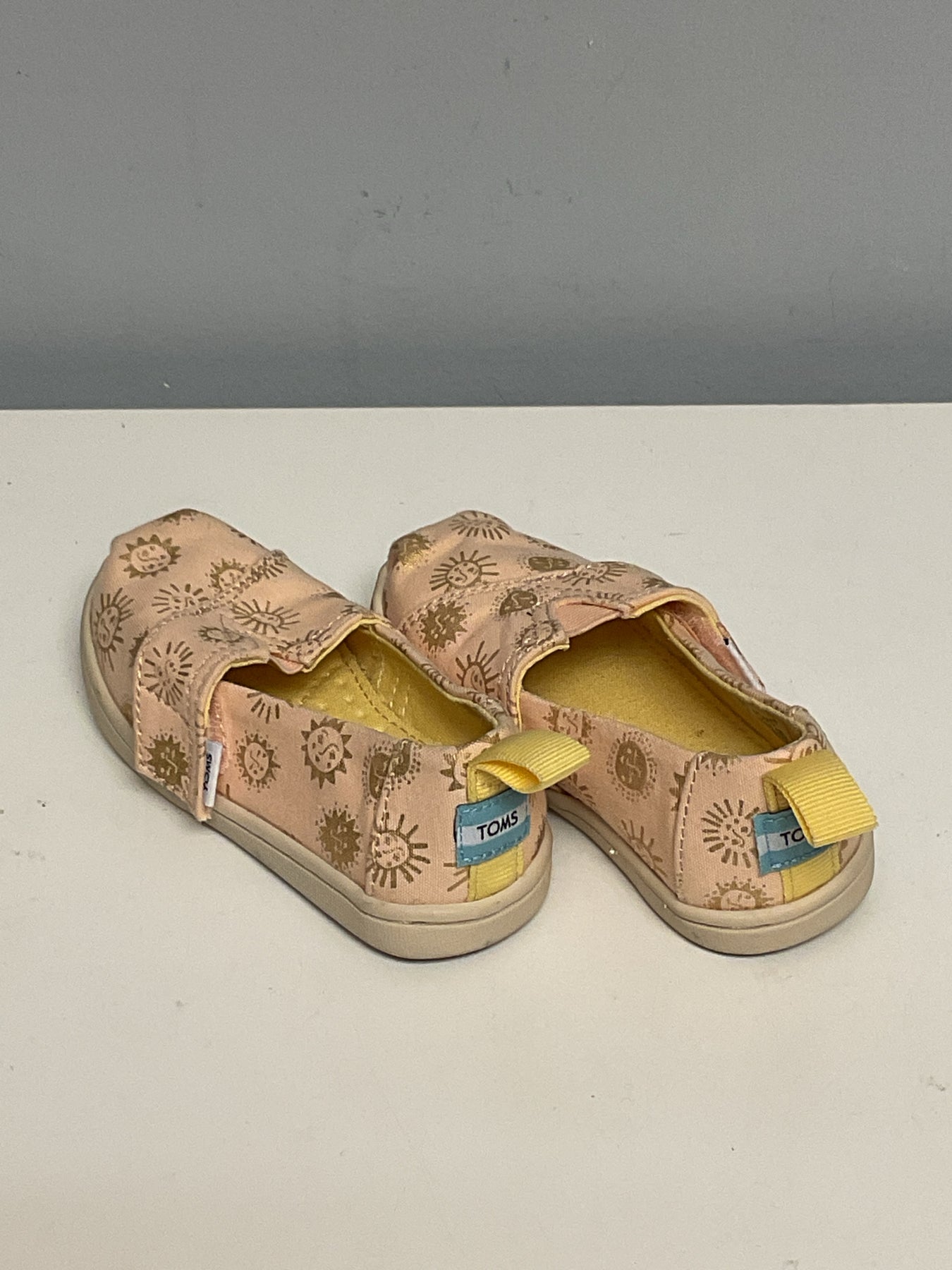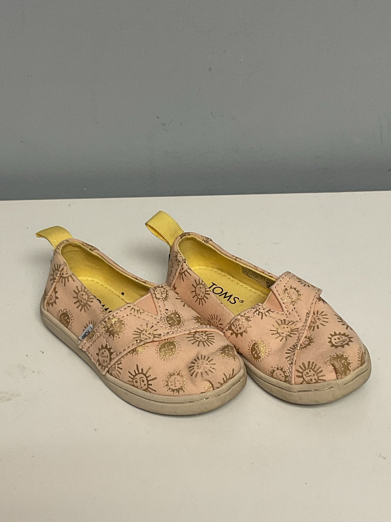 Toms Child Shoe Size 7 PEach & Gold Canvas Shoes